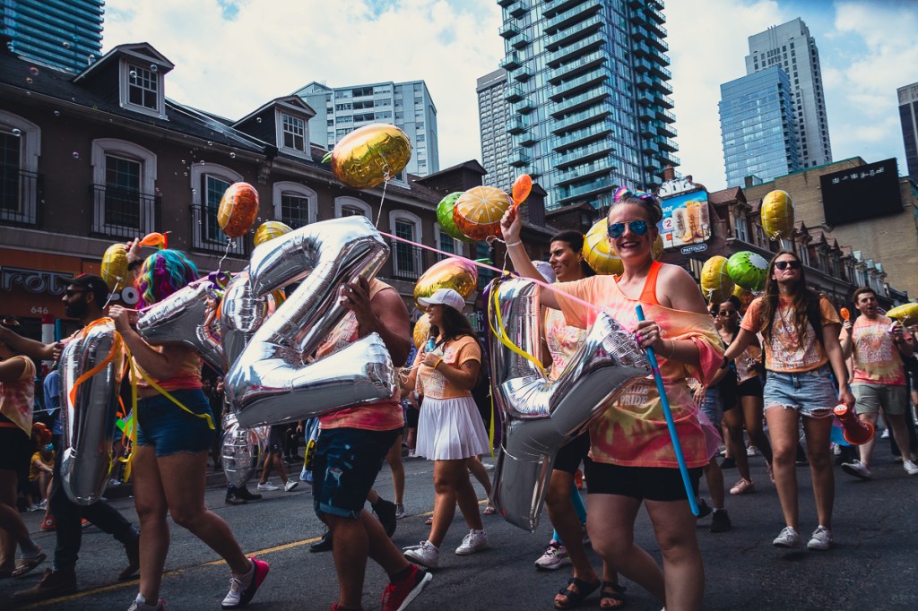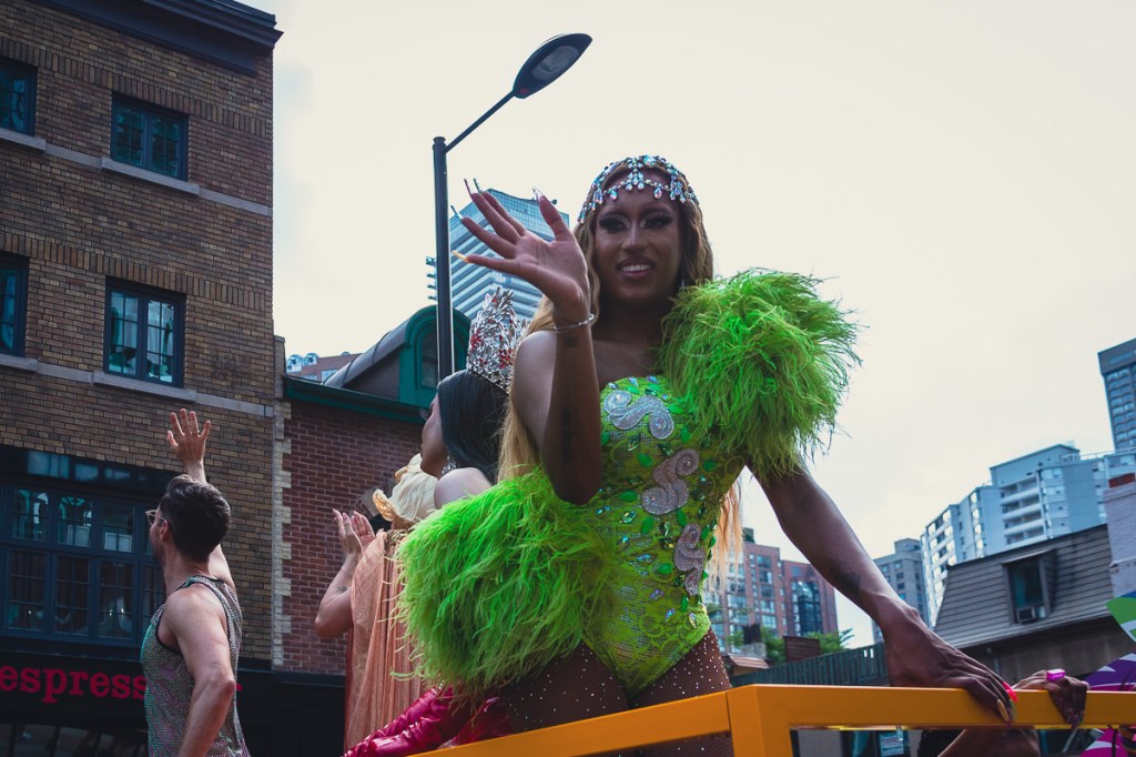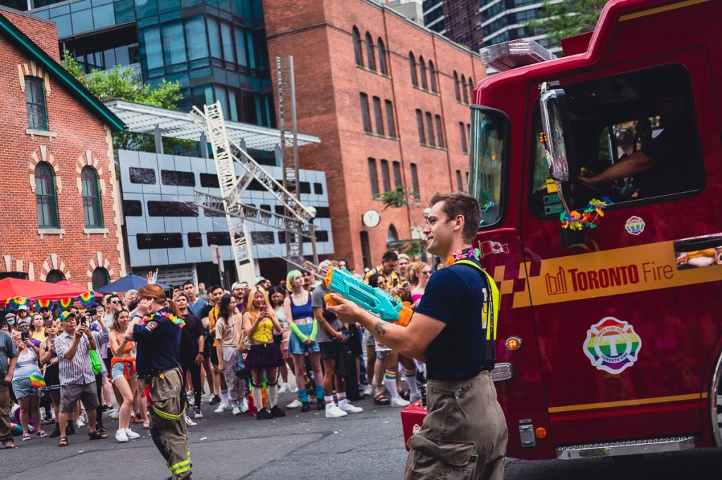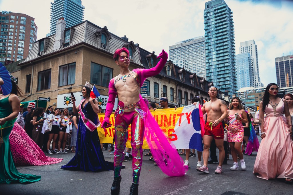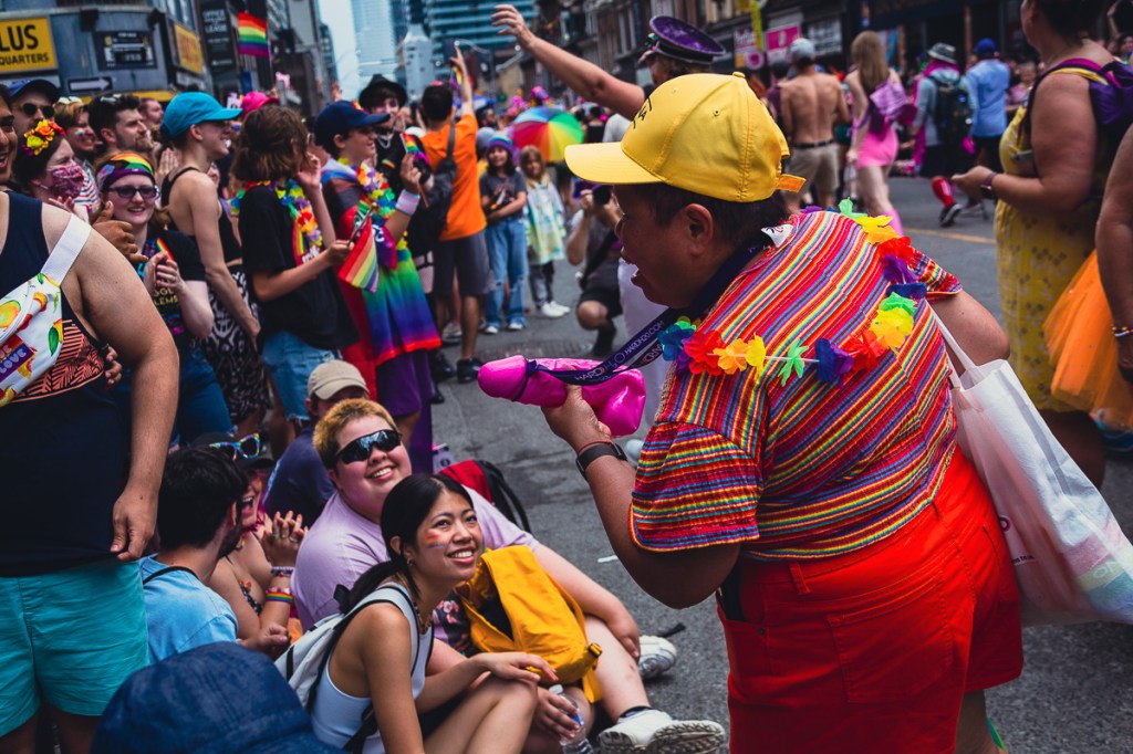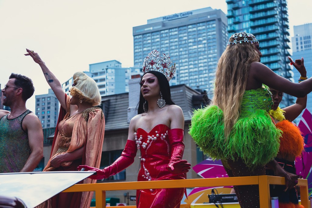 Hundreds of thousands of onlookers cheered as various groups and colourful floats streamed down Yonge Street. Among the ranks were drag queens, scantily clad dancers, squirt gun-toting firefighters, teachers, doctors, union members, and corporate-sponsor employees decked out in branded rainbow gear while dishing out swag.